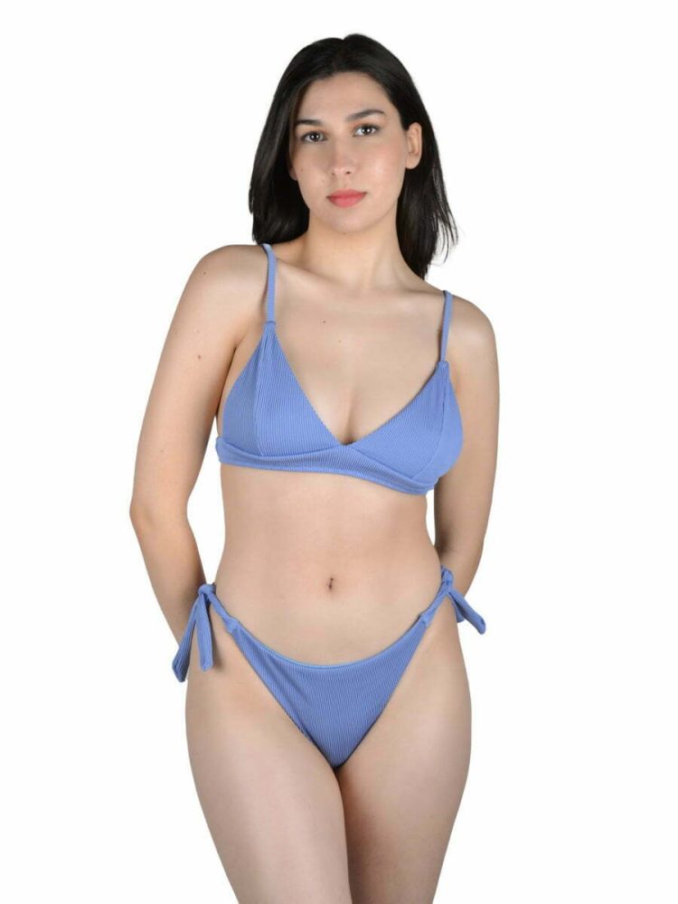 Γυναικείο Μαγιό Σετ Μπικίνι Τριγωνάκι Ριπ Μονόχρωμο με V High Rise Brazil SUN