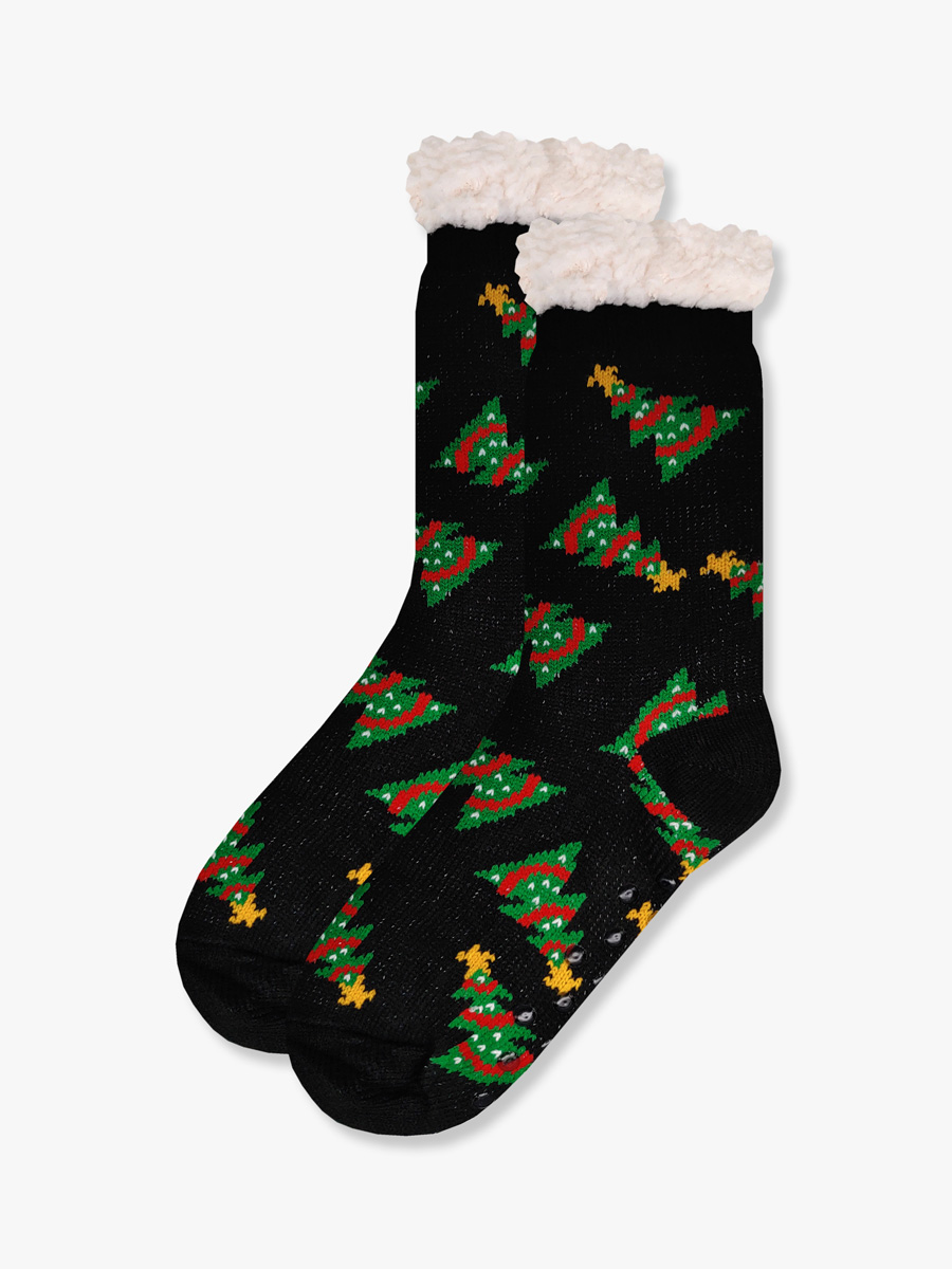 Χριστουγεννιάτικη Χνουδωτή Καλτσοπαντόφλα Christmas Trees με Αντιολισθιτικό Πάτο Unisex YTLI