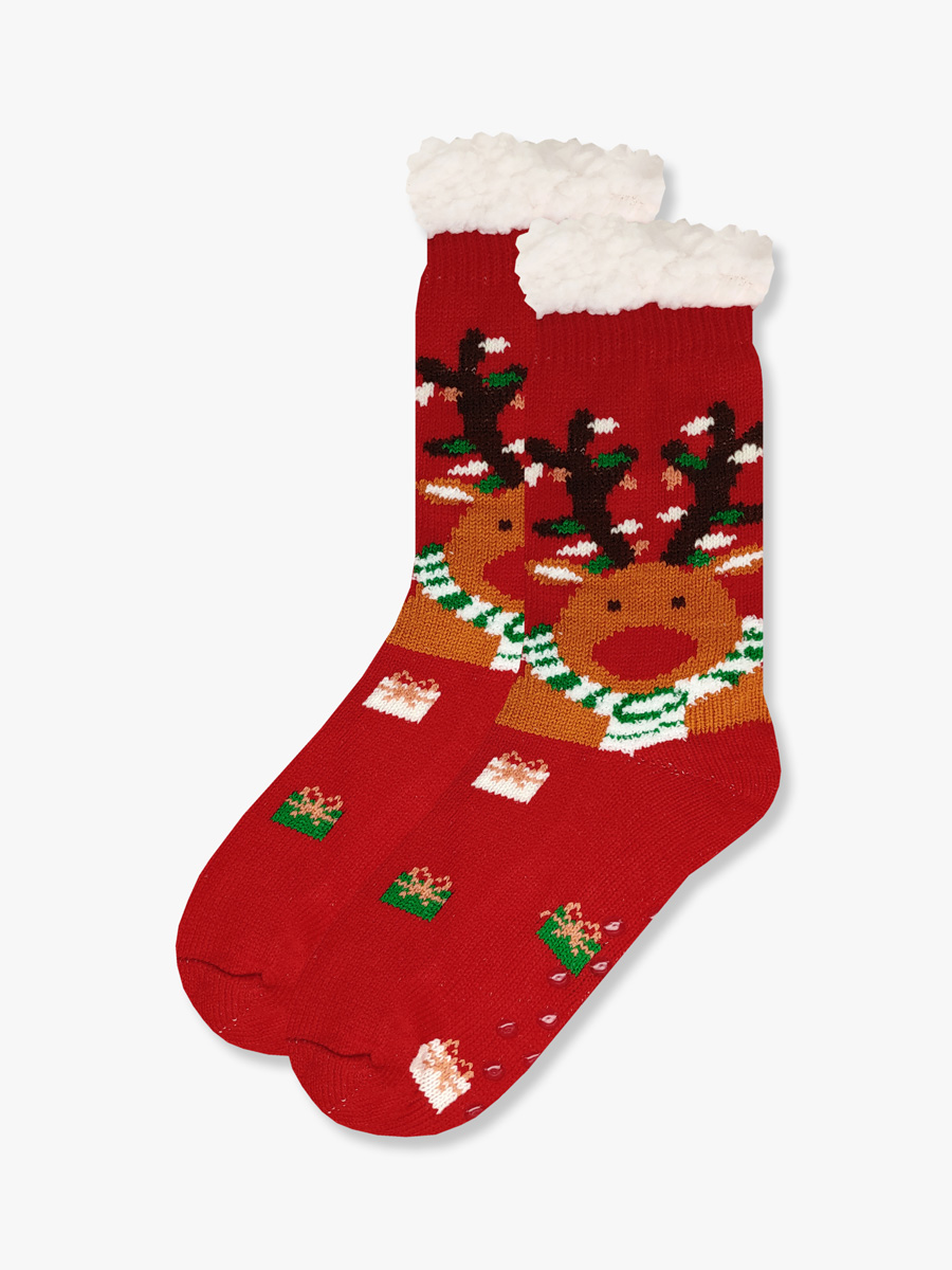 Χριστουγεννιάτικη Χνουδωτή Καλτσοπαντόφλα Reindeer με Αντιολισθιτικό Πάτο Unisex YTLI