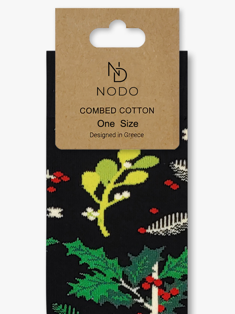 Χριστουγεννιάτικη Κάλτσα Πετσετέ με Σχέδια Christmas Mistletoe & Holly NODO