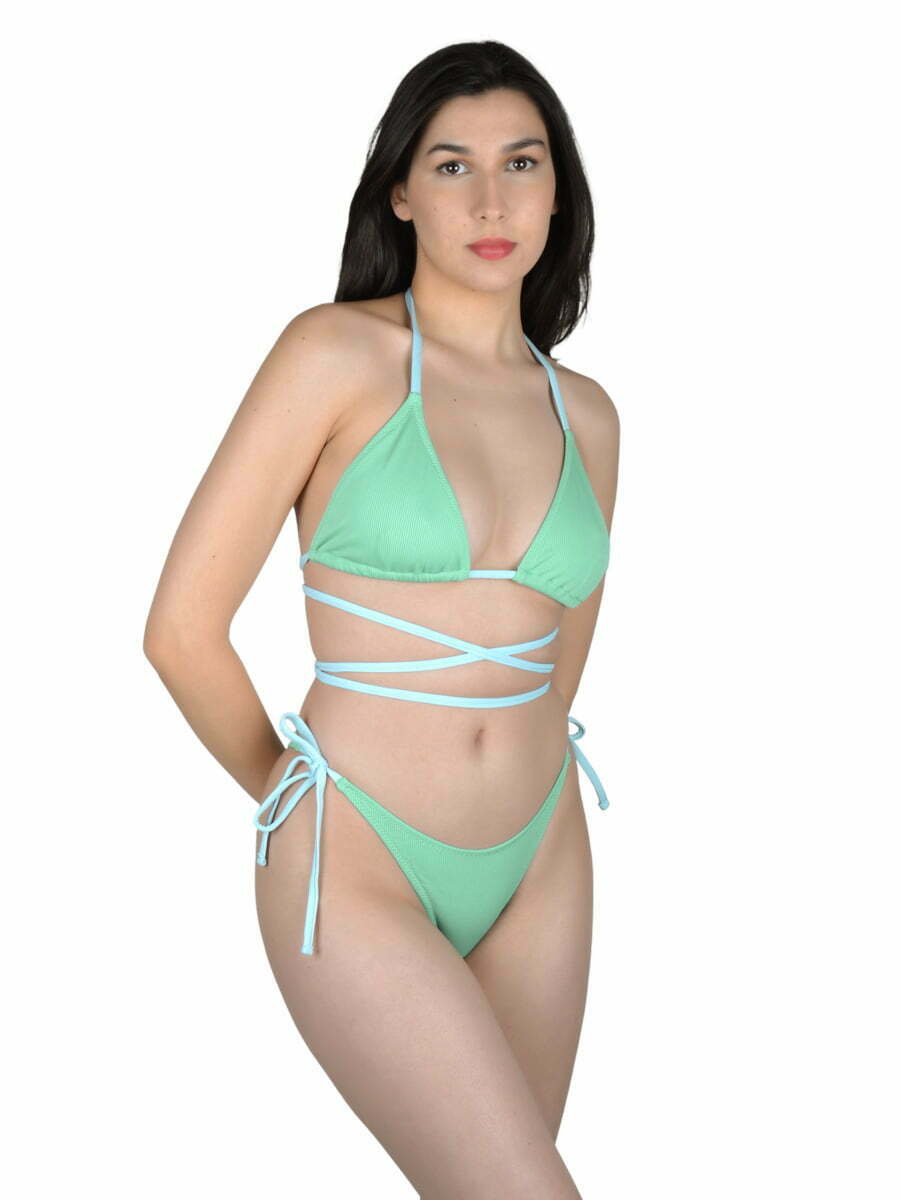- Γυναικείο μαγιό ριπ με δετό τρίγωνο πολυμορφικό με ενίσχυση στο επάνω μέρος και μπικίνι brazil δετό.