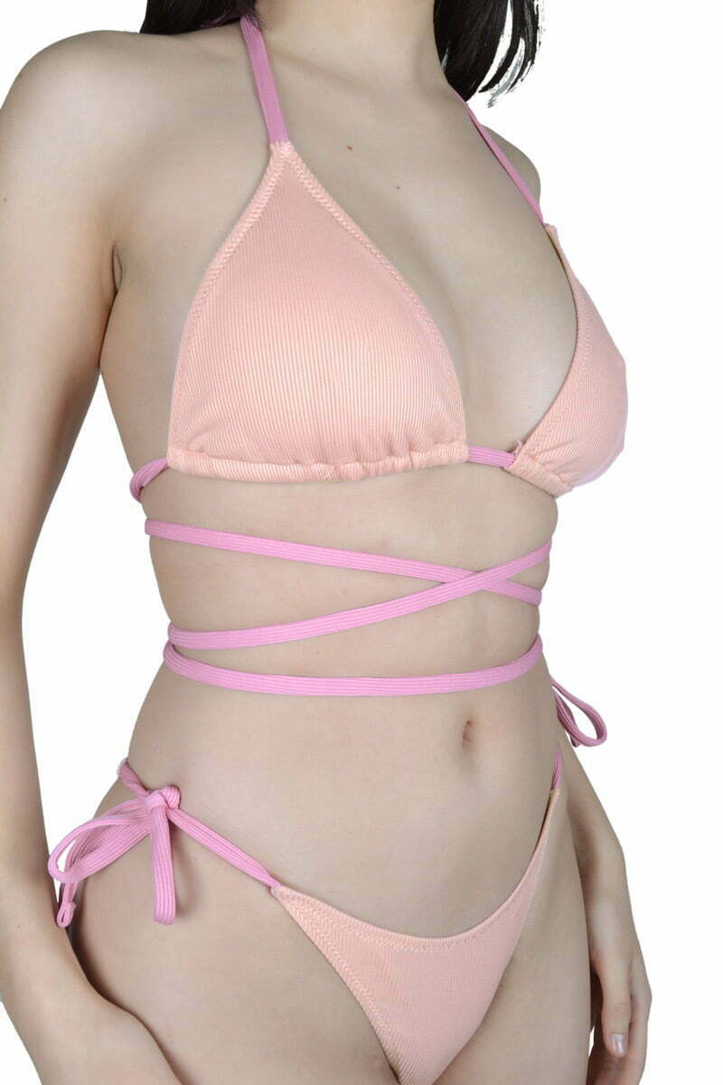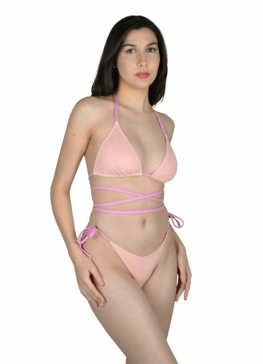 - Γυναικείο μαγιό ριπ με δετό τρίγωνο πολυμορφικό με ενίσχυση στο επάνω μέρος και μπικίνι brazil δετό.