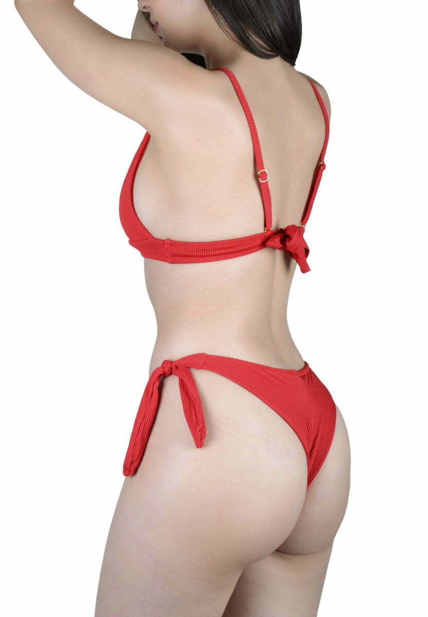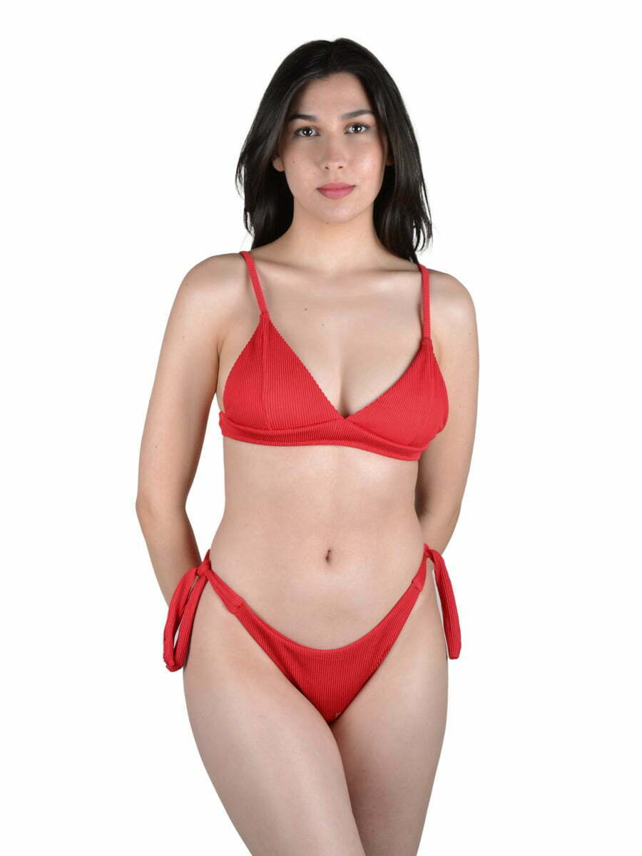 - Γυναικείο μαγιό με δετό τριγωνάκι με ενίσχυση στο επάνω μέρος και μπικίνι v high rise brazil δετό.