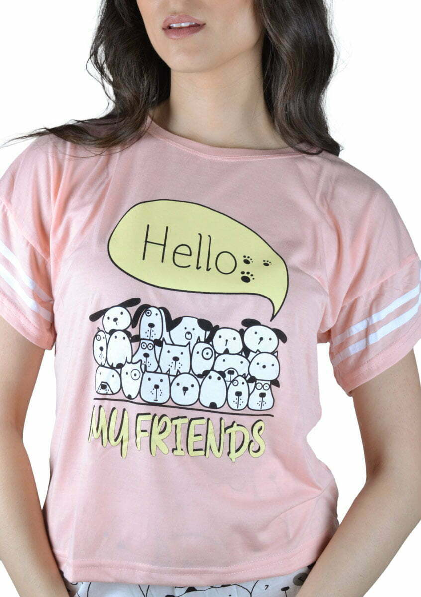 - Γυναικεία κοντομάνικη πιτζάμα με σχέδια hello my friends.