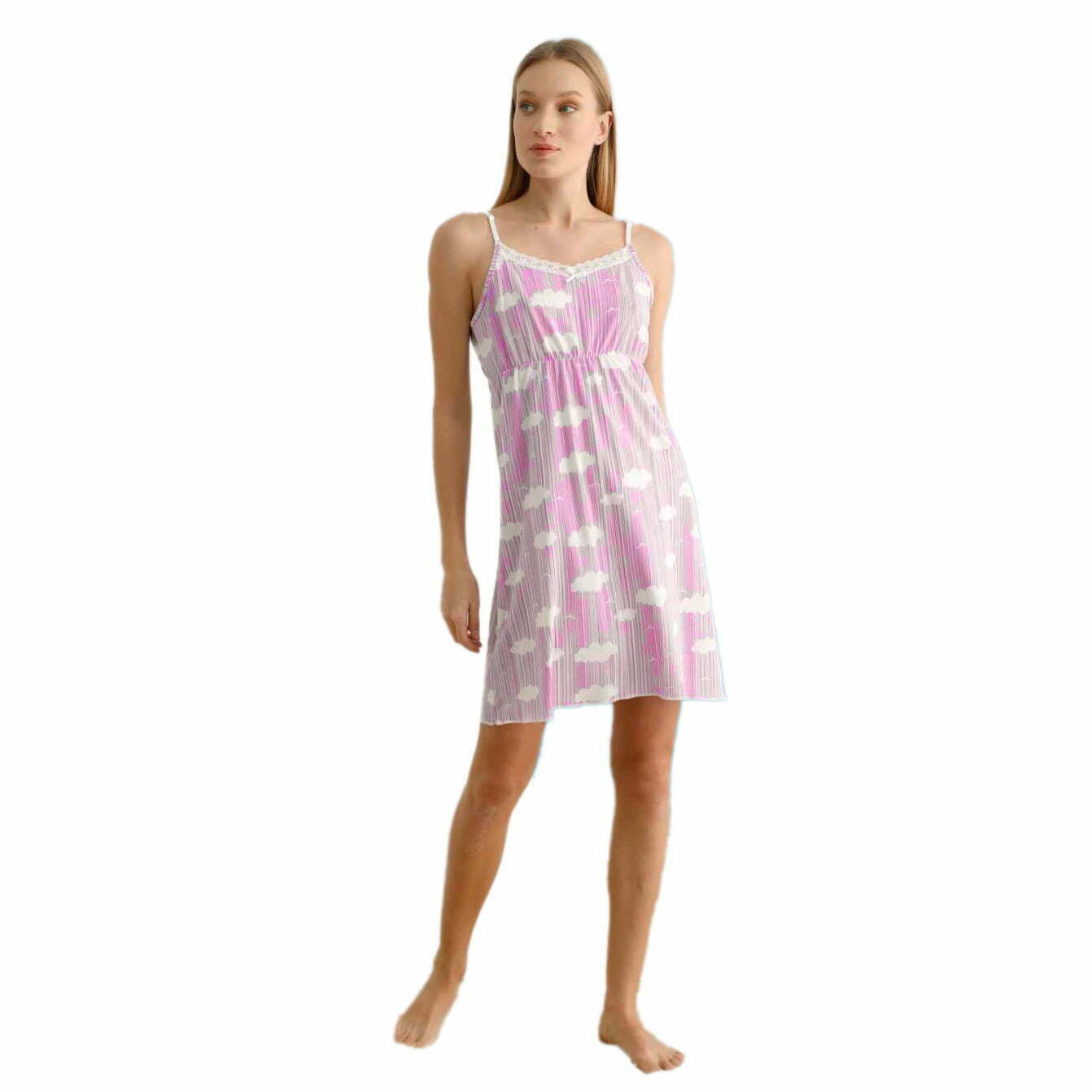• Γυναικείο τιραντέ νυχτικό ριγέ με σχέδια clouds.