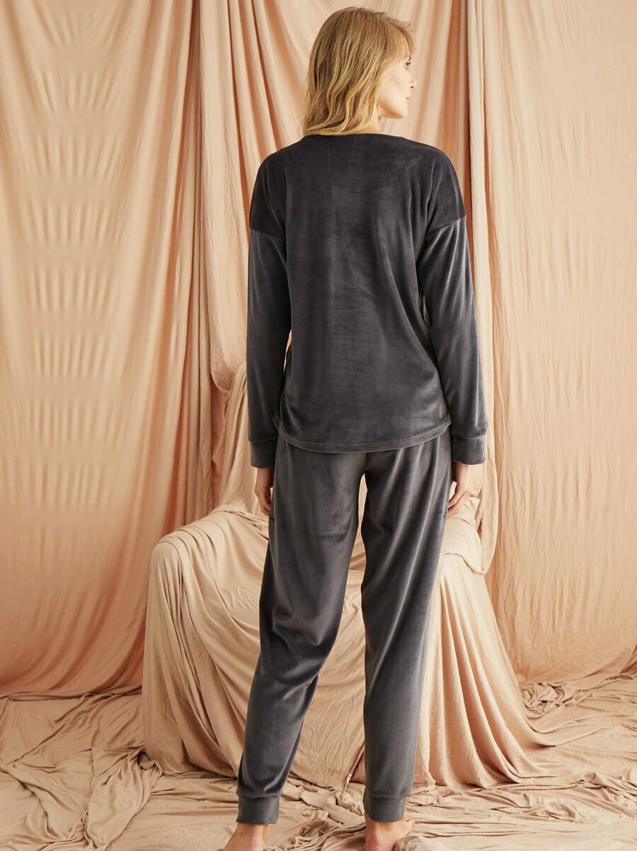 Γυναικεία Πιτζάμα Μακρυμάνικη Βελουτέ Μονόχρωμη PJM