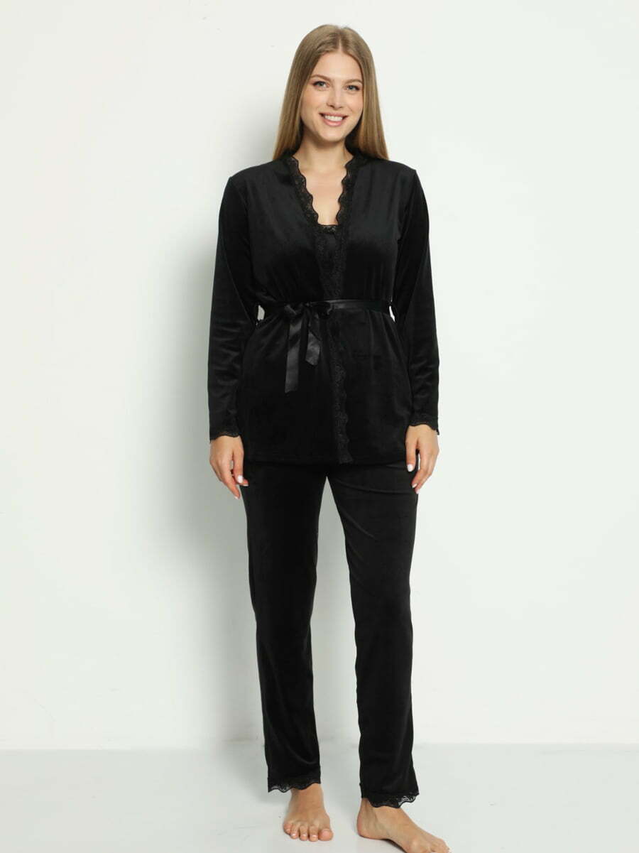 Γυναικείο Σετ Πιτζάμας Βελουτέ Μονόχρωμo PJM