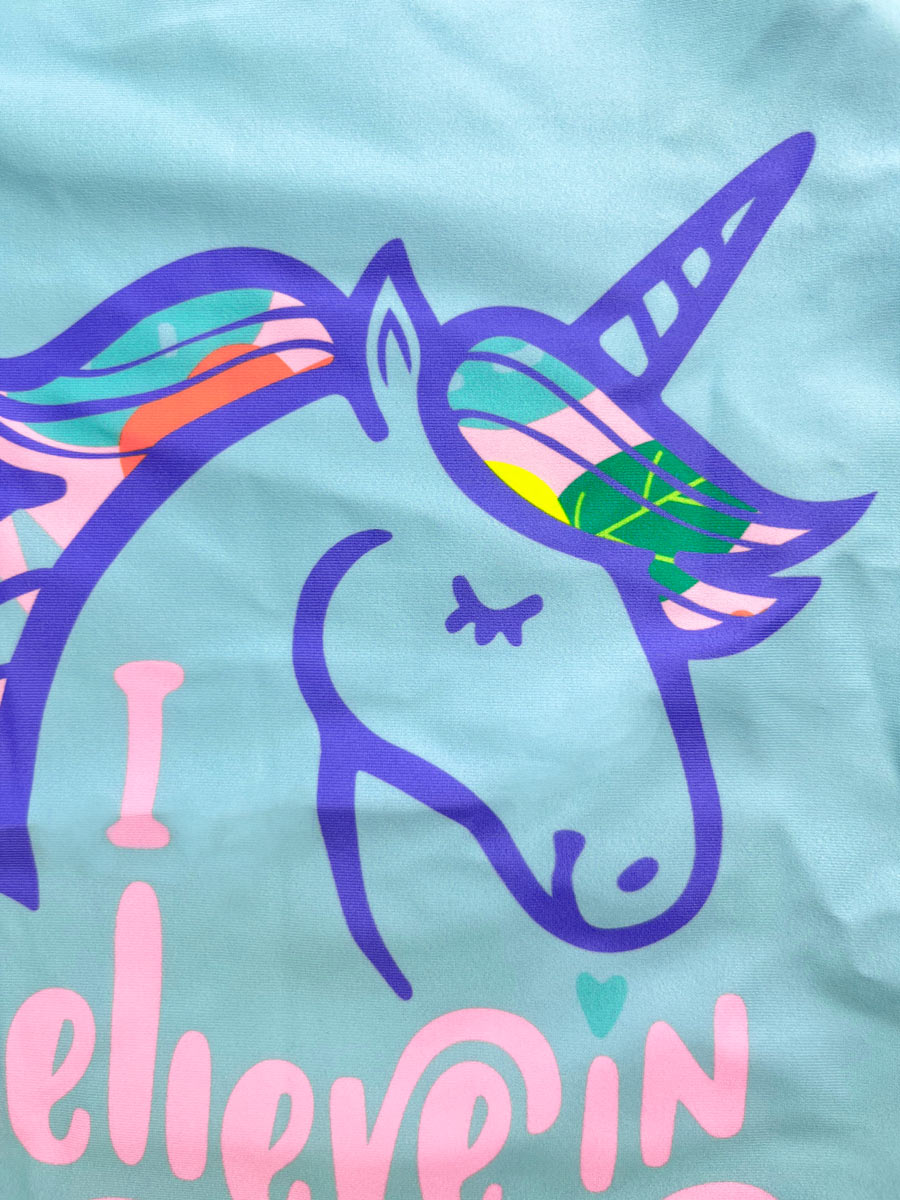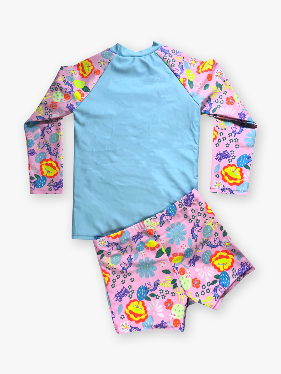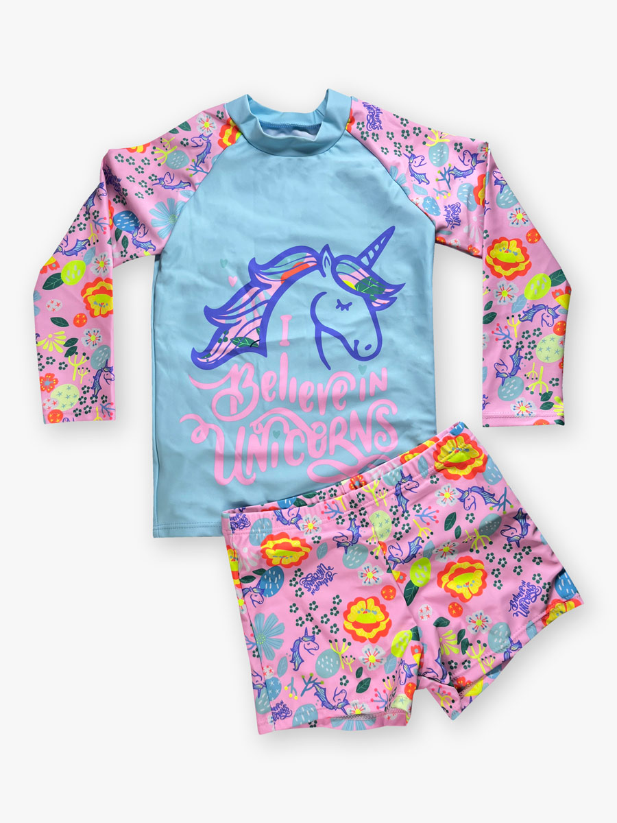 - Παιδικό σετ μαγιό μπλούζα και σλιπ με αντιηλιακή προστασία και σχέδια unicorn.